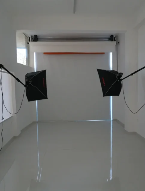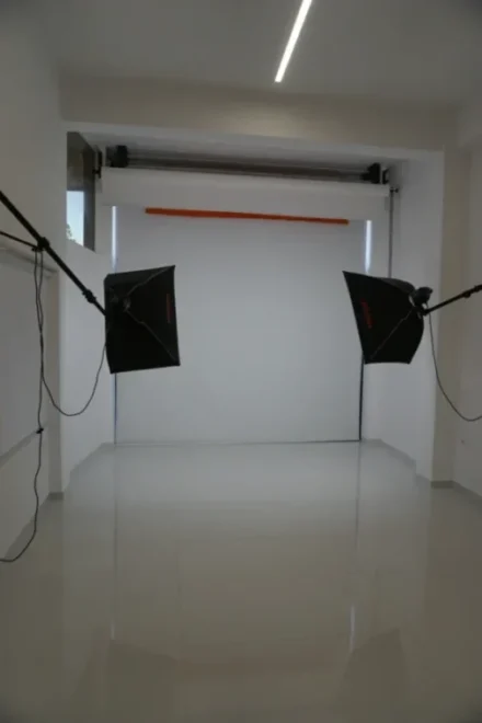 Πέραν του χώρου λήψης, το στούντιο διαθέτει χώρο για τοποθέτηση αντικειμένων, καθώς και πρόσβαση σε περαιτέρω εξοπλισμό, όπως white box και βιτρίνα φωτογράφισης κοσμημάτων.